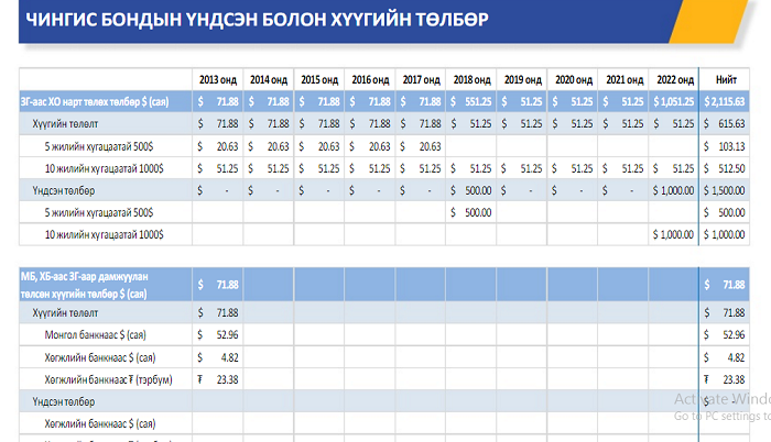Чингис бонды зээлийн эргэн төлөлтийн хуваарь