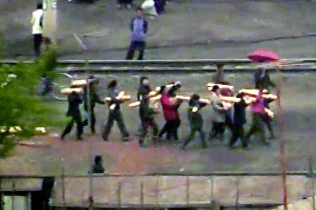 БНХАУ-ын Яанг Ганг гэх газраас энэ нууц зургийг авсан юм. Энэ бол БНАСАУ-ын нууц бүс билээ. Ийшээ том машинд ачсан сая сая фунт стерлингийн үнэтэй зэвсгийг тээвэрлэн оруулсан. Харин газар асгарсанг нь хүүхдүүдээр түүлгэж байгаа дүр зураг юм. Мэдээж энэ ажлыг өлсөж цангасан хүүхдүүд аяга хоолны төлөө хийж байгаа аж.