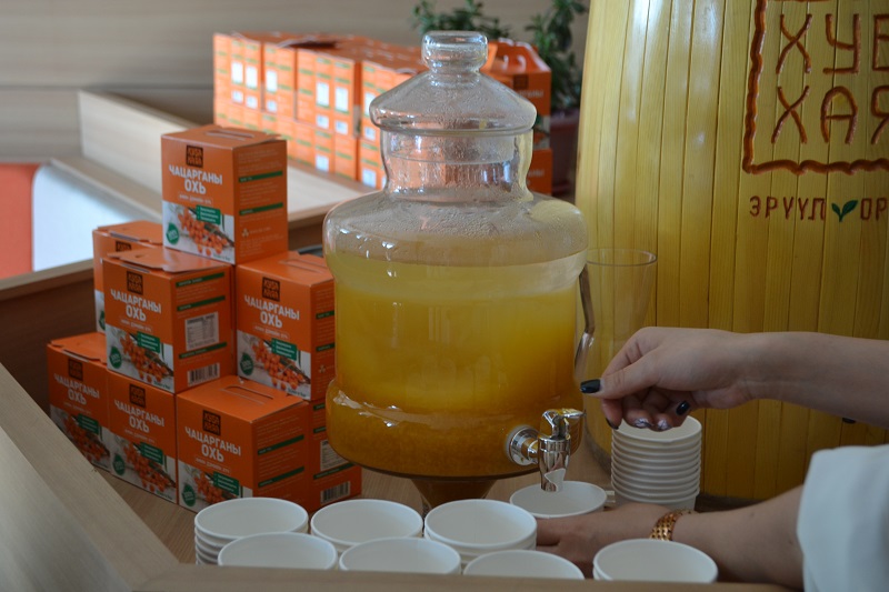 “Хуба буба “үйлдвэрийн ахлах инженер Б.Ган-Эрдэнэ “Манай үйлдвэр жимс боловсруулах, савалгаа гэсэн хоёр хэсэгт хуваагддаг. Жимс боловсруулах үйлдвэр нь цагт нэг тонн жимс боловсруулах хүчин чадалтай. Сард нэг сая шилтэй охь үйлдвэрлэдэг. Үйлдвэрийн тоног төхөөрөмжийн хувьд Герман Улсаас орж ирсэн. Герман зөвлөхүүдтэйгээр үйл ажиллагаа явуулдаг. Савлагааны шилийг Шанхайгаас оруулж ирдэг. Түүхий эдийн хувьд Сэлэнгэ аймгийн Зүүн бүрэн суманд чацарганы 100 га талбайтай. Талбайгаасаа жилд 100-150 тонн чацаргана хурааж түүхий эдээ бэлтгэдэг. Мөн Сонжин-болдогт гурван га чацарганы талбайтай. Манай үйлдвэрийн гол онцлог нь чацаргана жимсийг яг байгаагаар нь савладаг. Одоогийн байдлаар дотоодын хэрэгцээгээ хангаж байгаа. Япон, Солонгос, Хятад, Энэтхэг рүү экспортлох гэрээ хэлэлцээр хийх ажлын шатандаа явж байна” гэв