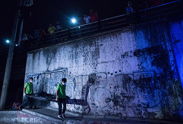 Эмнэлгийнхэн хар тамхи наймаалагчийн цогцсыг авч явж байгаа нь.
