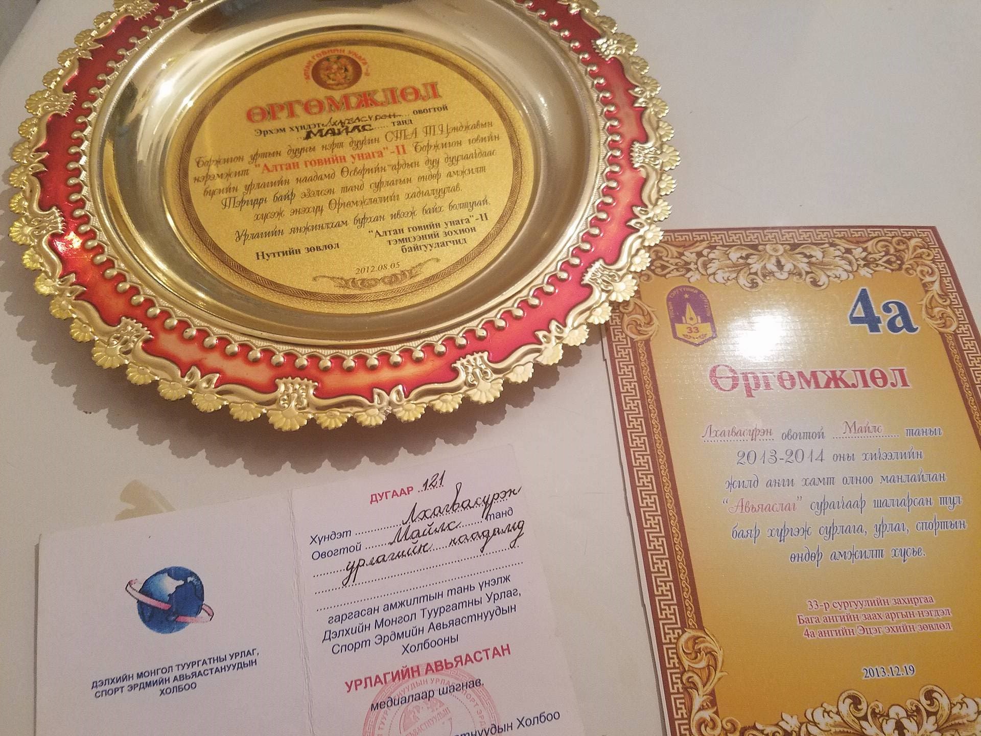 Соёлын тэргүүний ажилтан, уртын дуучин Т.Цэнджавын нэрэмжит “Алтан говийн унага” боржигон говийн бүсийн урлагийн наадамд тэргүүн байр эзэлснээ надад үзүүлж байсан. Зун болсон уралдаан. Хичээл сургууль тарсны дараа өөрөө эцэг эхтэйгээ бие дааж ороод энэ уралдаанд тэргүүн байр эзэлсэн байсан. Ардын дуу дуулах дуртай. Дандаа авьяасаа хөгжүүлж байдаг тэргүүний сурагч. Урлагаар манлайлдаг. Дуулахаас гадна урлагийн бүх төрлийн авьяастай. Ардын дууг илүү дуулах сонирхолтой байсан. Уртын дууг хөөрхөн аялна. Цаашид дуулсан бол ирээдүйтэй сурагч байлаа.