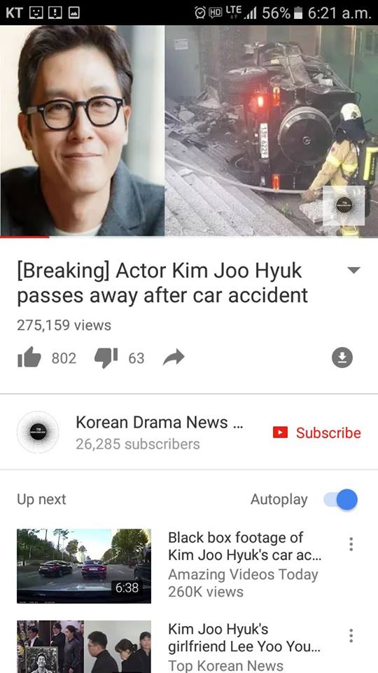 Тэгвэл хосууд аз жаргалтай хуримаа дуусангуут оршуулах ёслолд оролцжээ. Тэдний хуримын өдөр харамсалтайгаар өөд болсон Kim Joo Hyuk-ын оршуулах ёслол болжээ. Хуримд оролцсон олны танил хүмүүсийн ихэнх нь оршуулах ёслолд оролцсон байна. Хосуудын нэг болох Сон Жүн Ки эмгэнэл илэрхийлэн% оршуулах үйл ажиллагаанд оролцжээ. Жүжигчин Kim Joo Hyuk машин барьж байхад зүрх нь нь гэнэт өвджээ. Улмаар хажуу талынхаа машиныг мөргөж амь насаа алдсан гэсэн мэдээлэл байгаа юм. Одоогоор ослын шалтгааныг албан ёсоор тогтоогоогүй байгаа аж.