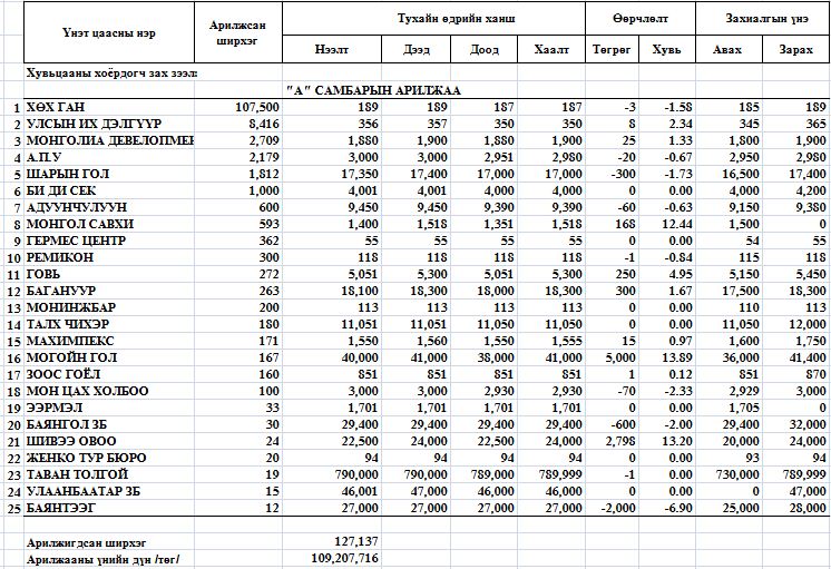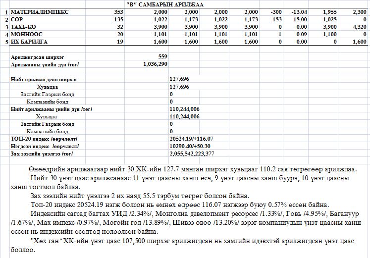 МХБиржийн 2011.05.16-ний арилжааны мэдээ