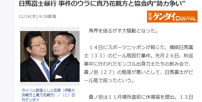 Харин “yahoo japan” сайтад энэхүү явдлын талаар “Харүмафүжи, Таканоива хоёроос гадна өөр хүмүүсийн нөлөөллийн тухай мэдээлжээ. Тухайлбал, тус хэрэгт холбогдсон хоёрын багш нар хоёулаа удирдах зөвлөлийн нөлөө бүхий хүмүүс бөгөөд ерөнхийлөгчид өрсөлдөж байсан. Харин шинэ Ерөнхийлөгч сонгогдсоноос хойш бие биедээ илт муу хандлагатай байх болжээ.Тиймээс бие биенийгээ унагаахын тулд Харүмафүжи, Таканоива нарын хэргийг зохиомлоор томруулж байгаа юм биш биз” гэсэн агуулгатай нийтлэл гарсан байна.
