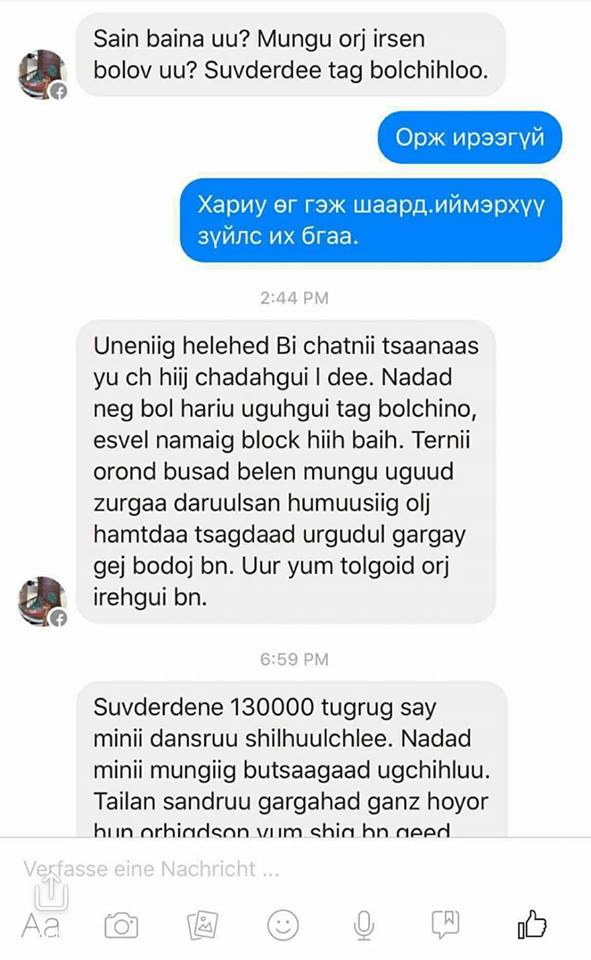 Suvdaad 70.000-90.000 shiljuulj bsan, butsaagaad erduusuu hariu bichij bgaagui. Oortoo avdag bsan yum daa. Muuha