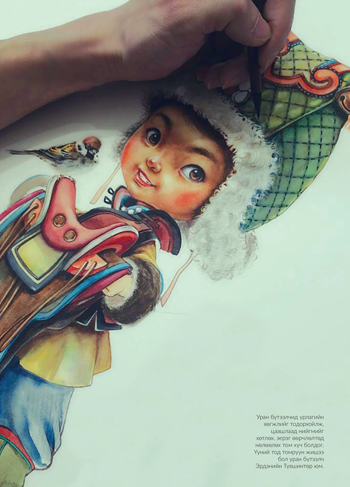 Нийслэл хотын гудамж үдшийн өнгө төрхөндөө орж гэрийн зүг яарах хүмүүсийн хөлхөлдөөн, дуут дохиогоо хангинуулан түгжрэх автомашины хөл хөдөлгөөн ид дундаа байх үед Их сургуулийн гудамжнаа нэгэн гэрэлт орон зай бий болов. Энэ бол Улаанбаатар арт галерей анхны үзэгчдийнхээ өмнө үүдээ нээсэн хэрэг байлаа. Тус галерейд монгол хүүхдийн өхөөрдөм зургуудыг дэлгэн харуулсан “Өв” үзэсгэлэн нээгдлээ. Энэ бол залуу зураач Э.Түвшинтөрийн анхны бие даасан уран бүтээлийн үзэсгэлэн юм. Шонхор шувуу мөрөн дээрээ суулган цэх алхах эрэлхэг бяцхан охин, ид шидийн ертөнц мэт байгальд сарлаг унан явах өхөөрдөм хүү, мориноосоо буугаад харваж унагасан шувуугаа харж буй анчин хөвгүүн, мөнгөн аяганаас сүү уугаад зогсох бяцхан хүү, хатны өмсгөлтэй охин гээд монгол соёл уламжлалын нарийн чимхлүүр элементүүдийг нэвт шингээсэн гайхалтай зургууд “Өв” үзэсгэлэнд тавигджээ.