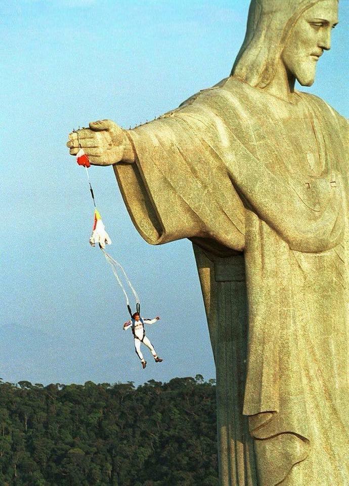 Хорвоо ертөнцөд сонирхолтой хачирхалтай гэмээр тохиолдлууд дэндүү олон байдаг. Тэгвэл уншигчдаа нэгэн сонирхолтой түүхийг өгүүлье. Бразил Улсад 1990 ондФессали гэх залуу онгоцноос шүхрээр буусан байна. Тухайн үед салхи гаран зүгээ алдан унахад Есүс барьж авчээ. Тус агшин зургийн хальснаа мөнхөрч үлдсэн байна.