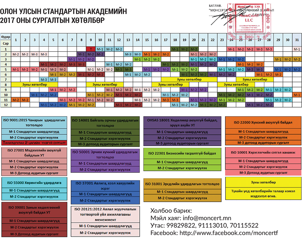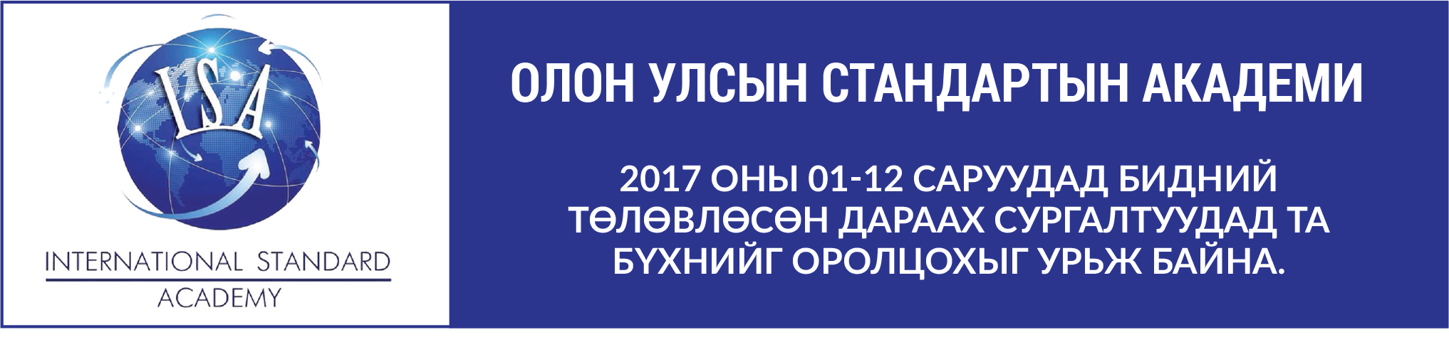 ОЛОН УЛСЫН СТАНДАРТЫН АКАДЕМИЙН 2017 ОНЫ СУРГАЛТЫН ХӨТӨЛБӨР