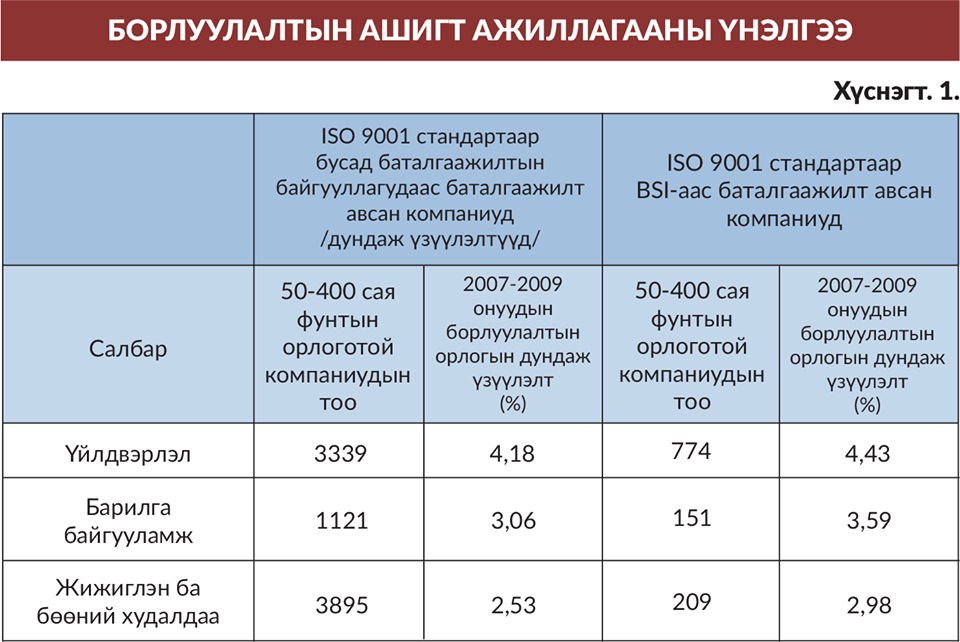 ISO 9001 серийн стандарт нь дэлхийн хамгийн амжилттай хэрэгжиж байгаа орчин үеийн дэвшилтэт стандарт болж байна. Дэлхий даяар 1 сая гаруй компани энэ стандартыг нэвтрүүлсэн ба жил бүр гэрчилгээ авах баталгаажуулалтын аудитын захиалгын хэмжээ улам бүр өсөн нэмэгдсээр байна. Анхны ISO 9001 стандарт нь 1987 онд гарснаас хойш 30 орчим жилийн туршид энэ үйл явц үргэлжилсээр байгаа юм. Менежментийн тогтоолцооны энэхүү стандартчилал болон баталгаажилтын зардал хэрхэн нөхөгддөг вэ? Британийн стандартын байгууллагын /BSI/ мэргэжилтнүүдийн явуулсан судалгааны үр дүнгээс харахад байгууллагын менежмент буюу удирдлагад хөрөнгө оруулж ISO 9001 чанарын менежментийн тогтолцооны стандартыг хэрэгжүүлэх нь үр ашигтай болно.