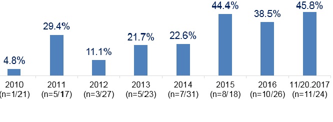 ДОХ-ын шатанд оношлогдсон хувь 2010-2017 оны арваннэгдүгээр сарын 20-ний байдлаар:
