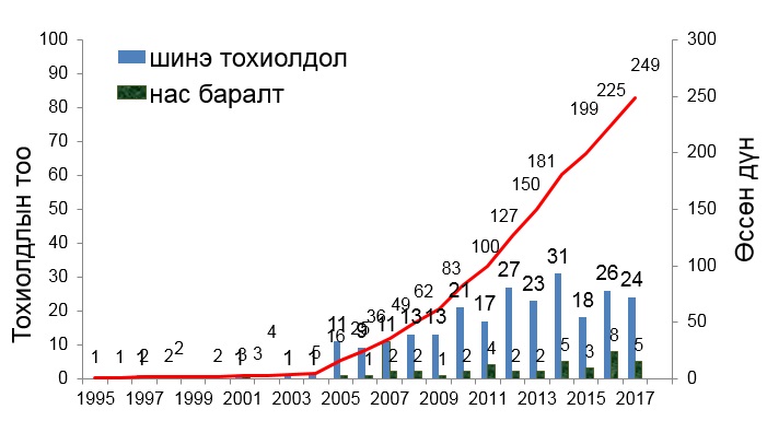 2017 оны арваннэгдүгээр сарын 21-ны байдлаар Монгол Улсад ХДХВ/ДОХ-ын нийт 249 тохиолдол, нас баралтын нийт 40 тохиолдол тус, тус бүртгэгджээ.