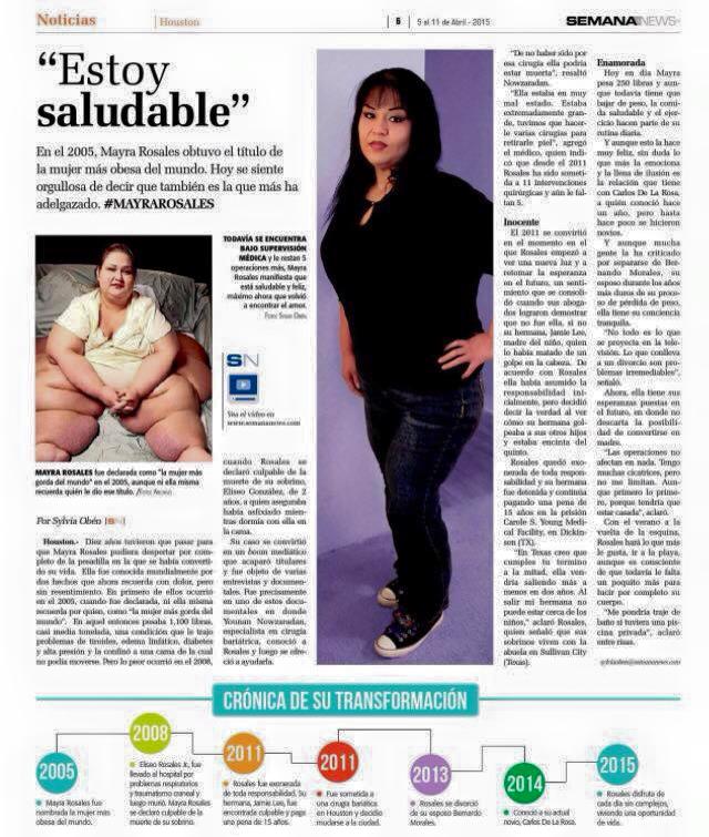 Тэгвэл Майра Росалес дахин хөл дээрээ зогсохоор барахгүй 403 килограммыг хаяж, өөртэйгээ адил таргалалтаар шаналж буй хүмүүстүлгэр дууриалал болжээ. Түүний жин хасах явц нь мэдээж амар байгаагүй гэнэ. Тэрбээр 96 килограмм жинтэй болохын тулд 11 удаа хагалгаанд орсон байна. Улмаар зөв хооллох дэглэм барьж, биеийн тамираар тасралтгүй хичээллэжээ. Одоо тэрбээр нөхөр, хүүхэдтэйгээ аз жаргалтай амьдарч байна. Түүний фэйсбүүк хэдэн мянган дагагчтай болжээ.