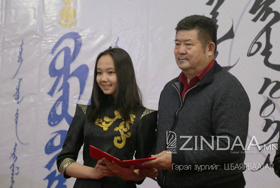 Монголын өсвөр үеийнхэнд үндэсний бичгээ заан сургаж, монгол бичгийг түгээн дэлгэрүүлэх үйлсэд үнэтэй хувь нэмэр оруулж буй багш нар уралдааны хүндтэй оролцогчид билээ. Тиймээс тэргүүн байр эзэлсэн багшийг гадаадад аялуулах эрхээр урамшуулдаг. Энэ жил Хөвсгөл аймгийн Мөрөн сумын “Титэм” сургуулийн монгол хэл бичгийн багш О.Оюунтунгалаг тус шагналыг хүртсэн байна.