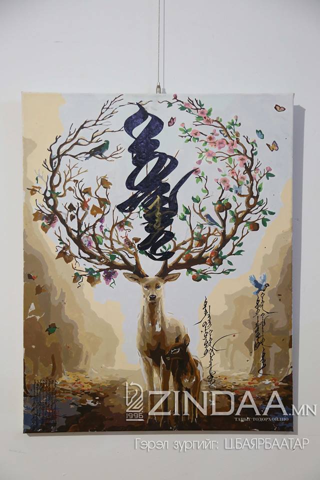 Бичлэгийн бус бүтээлийн ангилалд тэргүүн байр эзэлсэн Сэлэнгэ аймгийн Хөтөл сумын ЕБС-ийн багш Ж.Гэрэлмаа б бүтээлээ танилцуулж, сэтгэгдэлээ хуваалцлаа. Тэрээр “Уг тэмцээнд дөрөв дэхьжилдээ оролцож байна. Энэ жил “Номын өргөө” бүтээлээрээ оролцож байна. Миний номын өргөөнд 70-аад монгол бичгийн өлзий дэмбэрэл бүрдсэн сайхан үгийг бичсэн. Дөрвөлжин, угалзан бичгийг монгол бичигтэй хослуулан бичлээ. Миний бүтээлийн онцлог гэвэл монгол гэрт байх тавилга дээр монгол бичгийг шингээж өгснөөрөө онцлогтой” гэв.