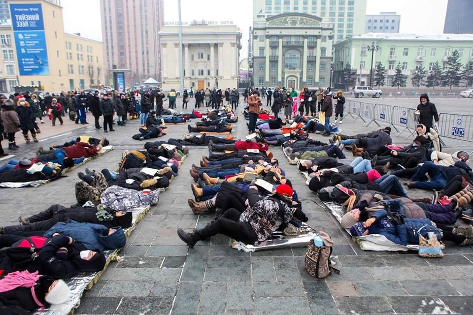 Төр, засгаас явуулж буй утааны эсрэг бодлогыг шүүмжлэн, өмнө нь хэд хэдэн удаа жагсаал зохиож байсан тэд өнөөдрийн тэмцлээ “Хэвтээ жагсаал” гэж нэрлэжээ. Жагсаалд оролцогч иргэд “Утаагаа арилга, угаартаж үхлээ, утааны эсрэг дорвитой арга хэмжээ ав” гэж дуу нэгтэйгээр хашгирч байсан юм.