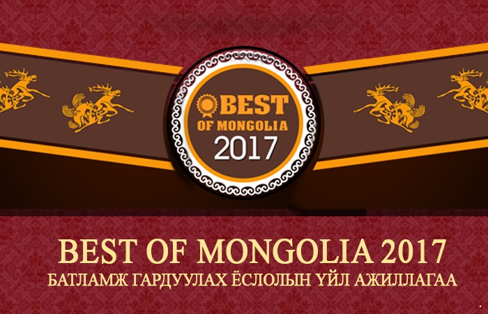 “BEST OF MONGOLIA 2017” оны шилдэг байгууллагад батламж гардуулах ёслолын ажиллагаа зургаа дахь жилдээ зохион байгууллагдлаа. Энэ арга хэмжээ нь Монгол Улсад бизнесийн болон олон талт үйл ажиллагаа явуулдаг аж ахуйн нэгж байгууллагуудаас хэрэглэгч олон нийтийн санал асуулгаар буюу цахим санал асуулгаар шилдгийн шилдгийг шалгаруулан алдаршуулах зорилготой юм.