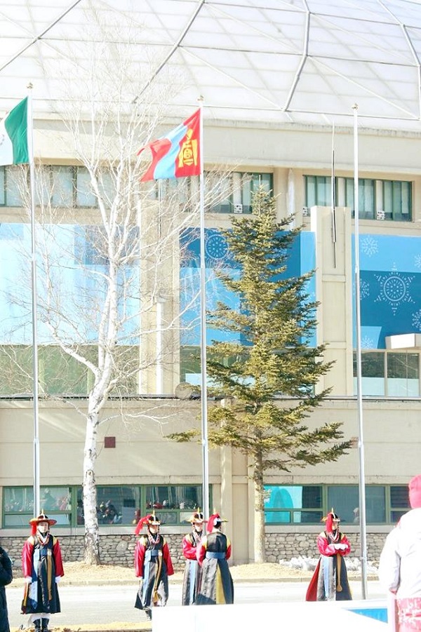 Харин өчигдөр 15:00 цагт Монголын баг тамирчдын туг өргөх ёслол "Пёнчан тамирчдын тосгон"-нд зохион байгуулагдлаа.