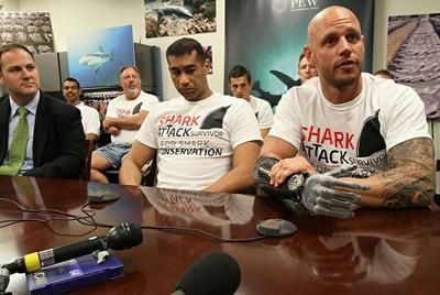 • Кришна Томпсон (Krishna Thompson, на фото в центре) 2001 онд Багамын арал дээр акулын хоол болох шахсан. өрөөсөн хөлөө акуланд таслуулаад эрэг рүү ганц хөлөөрөө сэлсээр байгаад иржээ. Ухаан алдахаасаа өмнө зочид буудлынхаа өрөөний дугаарыг элсэн дээр бичээд орхисон байжээ.