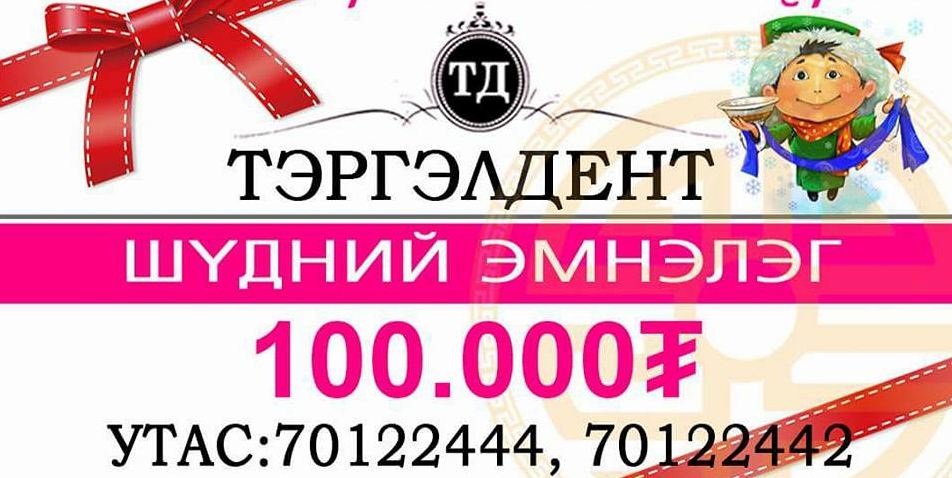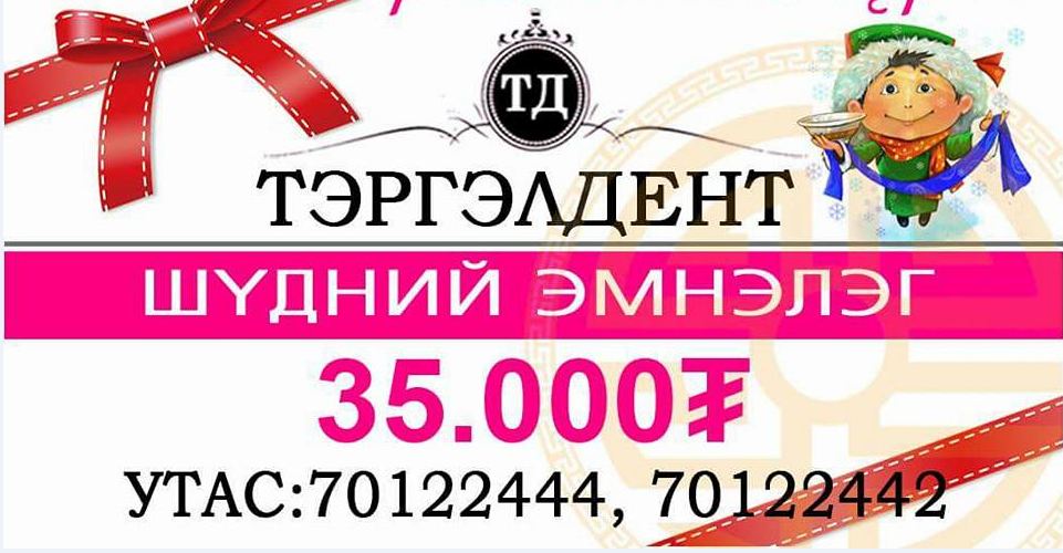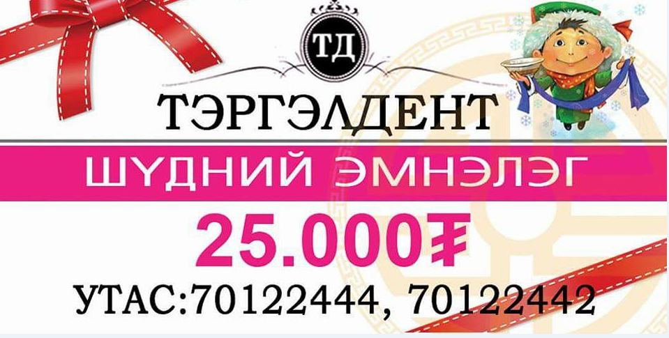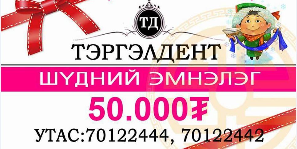 Тэгвэл саяхан "Тэргэлдент" шүдний эмнэлэг нь хэд хэдэн төрлийн карт гаргажээ. Та бүхэн хайртай дотны эр цэргийн баярын бэлэг болгож, 25.000, 35.000, 50.000, 100.000 төгрөгийн картаас сонголтоо хийн инээмсэглэл бэлэглээрэй. Шүд эрүүл бол бие эрүүл. 50.000-аас дээш худалдан авалт хүргэлттэй юм байна. Утас: 70122442, 70122444
