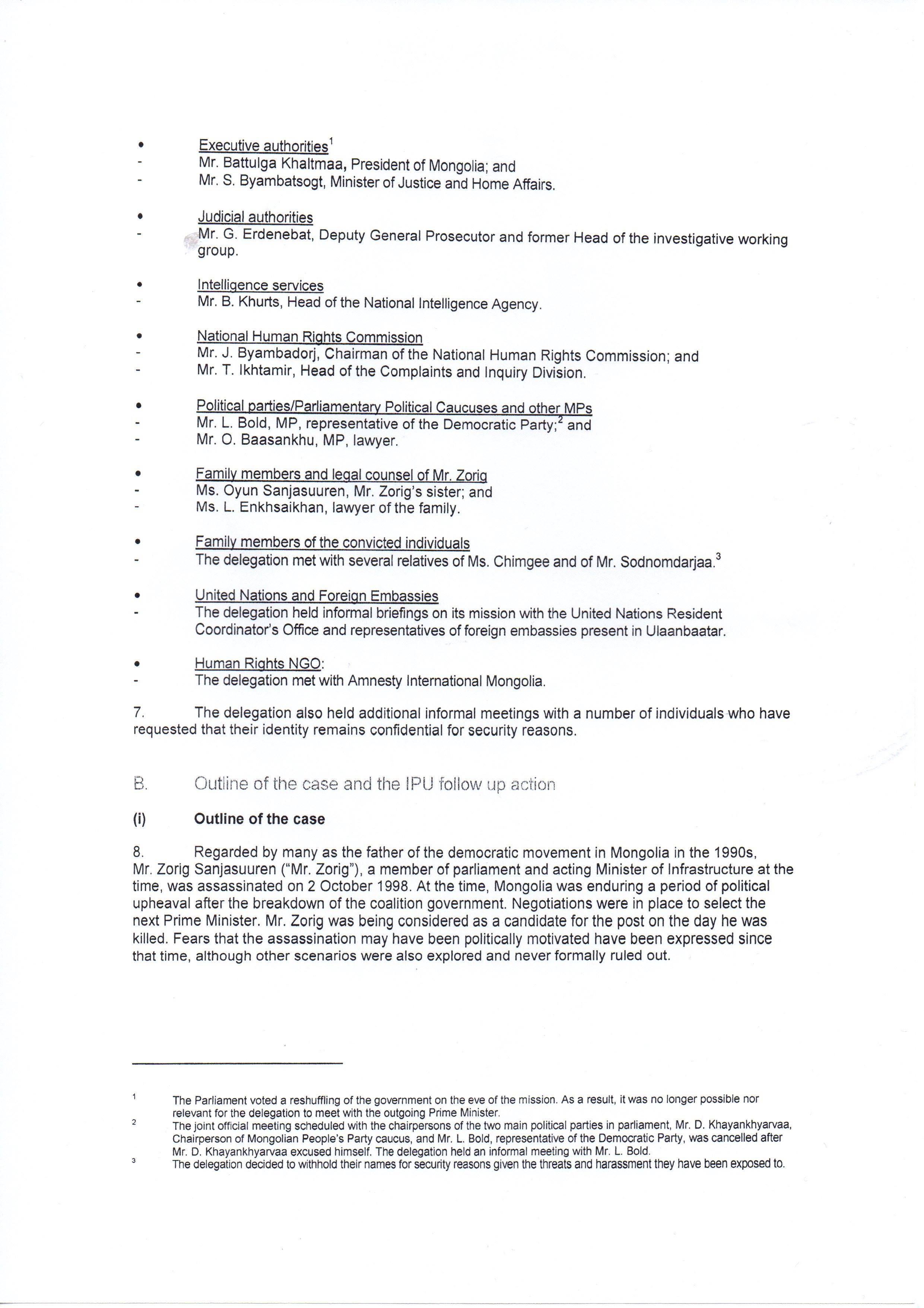7. Мөн аюулгүй байдлаа хамгаалах үүднээс нэрээ нууцлахыг хүссэн хэд хэдэн хувь хүмүүстэй төлөөлөгчид албан бус уулзалтуудыг бас хийсэн.