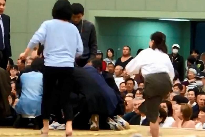 Майдзуру хотын захирагч 66 настай Рёзо Татами сумогийн барилдаан эхлэхээс өмнө дэвжээн дээр ухаан алдсан байна. Түүнийг ухаан алдсан даруйд туслахаар очсон эмэгтэй эмч, сувилагч нарыг туслахыг зөвшөөрөөгүй байна учир нь эмэгтэйчүүд дэвжээ рүү орж болохгүй аж. Рёзо Татами тэмцээн эхлэхээс өмнө нээлтийн үг хэлэхдээ биеийн байдал нь их муу байжээ.