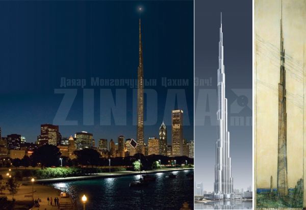 1956 он. Иллинойс, Чикаго. 1609 метр, 528 давхар энэ тэнгэр баганадсан цамхагийг архитектор Френк Ллойж Райт зохиожээ. Төсөл цахилгаан шатны асуудлаас болж бvтэлгvйтсэн.