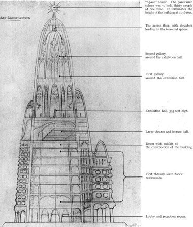 Хамгийн гайхшруулсан байгууламжийн төсөл. 60 давхар энэ байшинд Парисийн гурван сая хvн багтахаар төлөвлөжээ. Хотын төвд байрлах тvvнд дэд бvтэц, агаарын нислэгийн буудал гээд бvгд байх байсан гэнэ.
