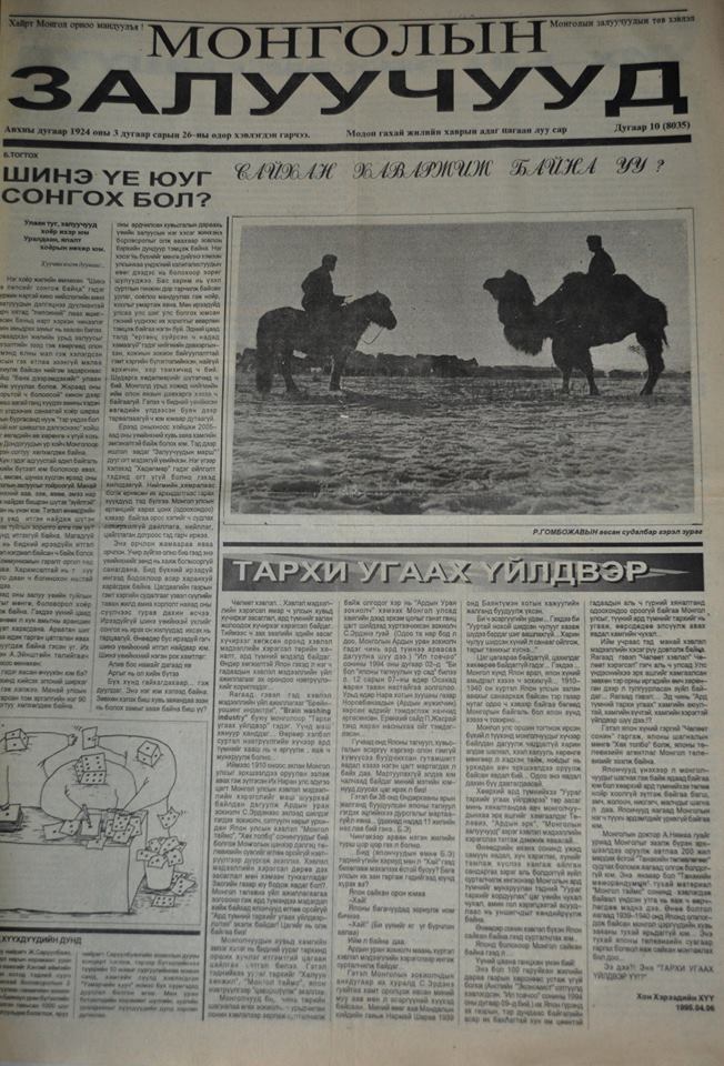 (“МОНГОЛЫН ЗАЛУУЧУУД” сонин. 1995 он. № 10-д хэвлэгдсэн. Товчлон оруулав.)