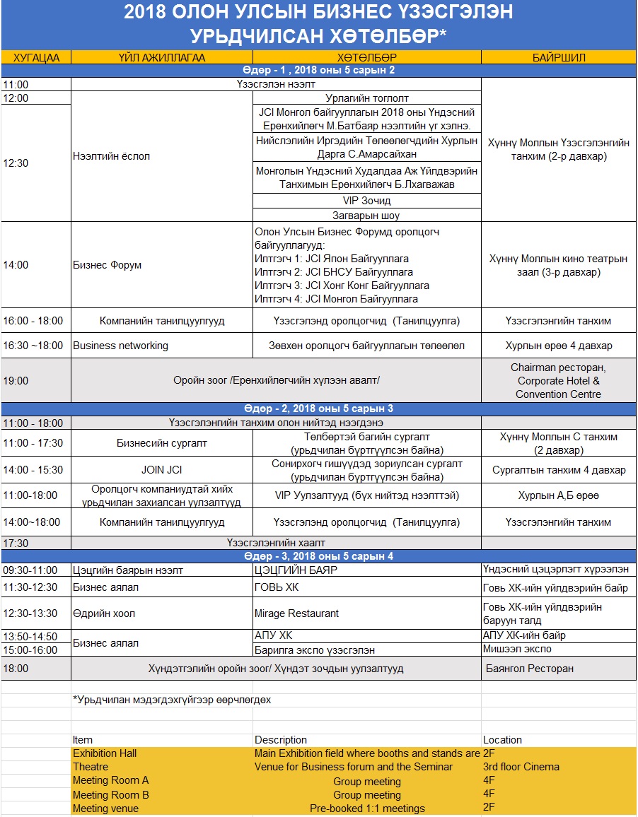 2018 JCI International business fair олон улсын үзэсгэлэн Улаанбаатар хотноо анх удаа 2018 оны 05 сарын 02-04 ны өдрүүдэд болно.