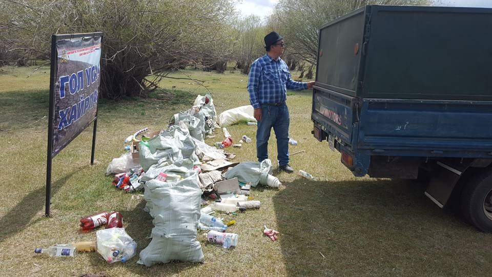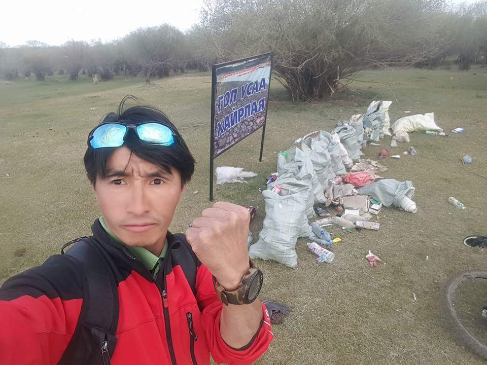 Аялагч Ч.Мөнгөндалай Орхон голын эрэг дагуух хогийг ганцаараа цэвэрлэн, хэдэн өдрийн нүүрийг үзэж байгаа билээ.