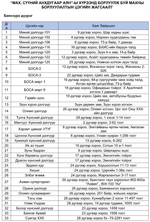 Дээр дурдсан аяны хүрээнд борлуулж буй үхрийн махыг 5500 төг, хонины махыг 5300 төг, ямааны махыг 4400 төгрөгөөр тус тус худалдаанд нийлүүлж байна.