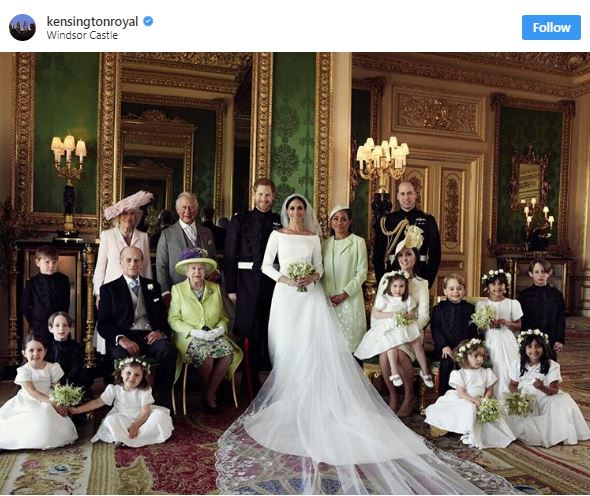 Мөн албан ёсны нэгэн хөрөг зурагт II Элизабет хатан хаан, хунтайж Филипп, хунтайж Чарльз эхнэр Камиллагийн хамт, ханхүү Уильям, Кэйт Миддлтон зэрэг Британийн хатан хааны гэр бүлийн олон гишүүдээс гадна Меганы ээж шинээр гэрлэсэн хосуудтай хамт нэгдсэн аж.