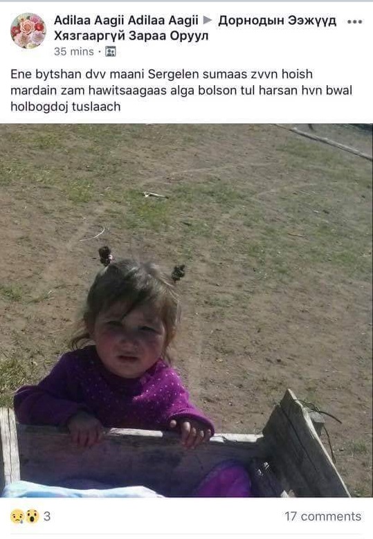 Мөн саяхан Баян-Өлгий аймагт бас 2 настай нэг хүүхэд гэрийнхээ хажуухнаас алга болоод, Онцгойгийнхон хайж байгаа аж.
