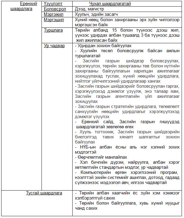 Засгийн газрын Хэрэг эрхлэх газрын Тэргүүн дэд даргын ажлын байрны шаардлага: