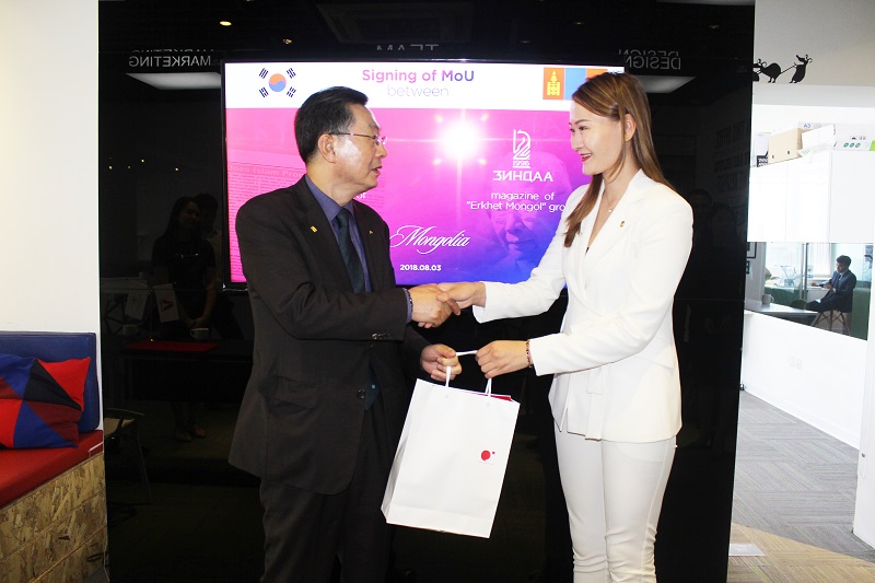 БНСУ-ын “ASIATODAY” группийн Ерөнхийлөгч, ноён Ү Жон Сүн /Woo Jong Soon/ төлөөлөгчдийн хамтаар энэ сарын 2-4-ны өдрүүдэд Монгол Улсад ажил хэргийн уулзалт зохион байгуулж байна. Уулзалтын үеэр “Эрхэт Монгол” группийн “Зиндаа” сэтгүүлийн Гүйцэтгэх захирал С.Мөнхзул, ноён Ү Жон Сүн нар хамтран ажиллах санамж бичигт гарын үсэг зурлаа.