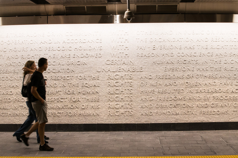 Өнгөрсөн хугацаанд метроны буудлыг сэргээн засварлах төслийн өртөг 69 сая саяас 180 гаруй сая ам.доллар болтлоо өссөн байна. Шинэхэн буудлыг АНУ-ын тусгаар тогтнолын тунхаг бичиг болон НҮБ-ын Хүний эрхийн түгээмэл тунхаглалын үг бүхий шигтгэмэл зургаар чимжээ.