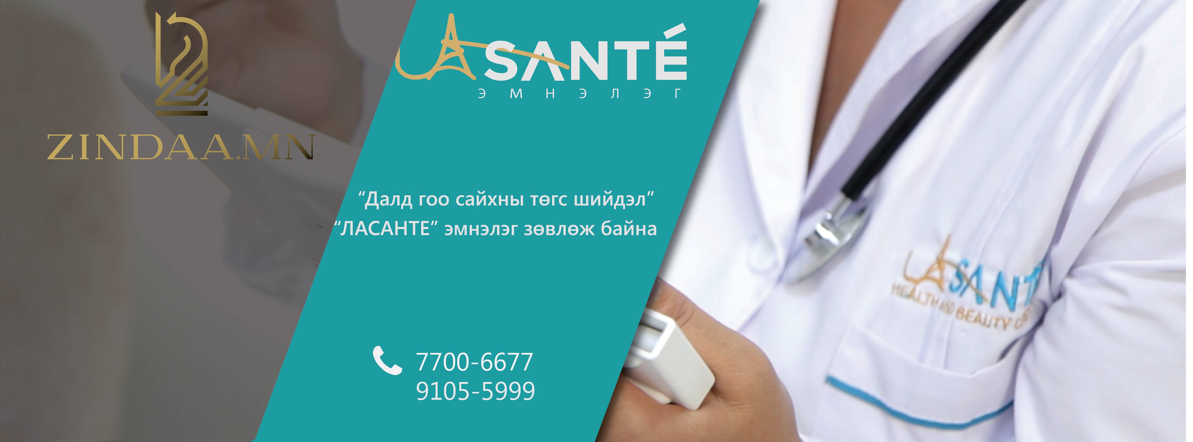 “Эрүүл Монгол эмэгтэй, Элэг бүтэн гэр бүл” уриатай “La Sante” эмнэлэг үйл ажиллагаагаа явуулаад хоёр жил гаруйн хугацаа өнгөрч байна. Тус эмнэлэг нь хамгийн сүүлийн үеийн нөхөн сэргээх физик эмчилгээг үйлчлүүлэгч нартаа санал болгодог байна.