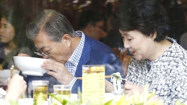 Хоёр дахь өдрийн хэлэлцээний дараа Ким Чен Ун, Мүн Жэ Ин нар “Тэдоган” загасны захын ресторанд пхеньянчуудтай хамт үдийн зоог барьж, Умард Солонгост үржүүлсэн хилэм загасны аквариумыг үзэж сонирхлоо. Умард Солонгост хилэм загасыг 1990 оноос хойш үржүүлж байгаа аж.