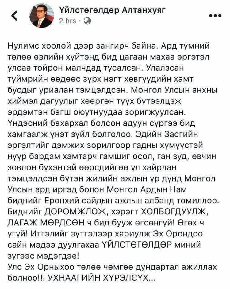 Бид үүнийг л хүсэж байлаа... Хийсэн ажил, хүрсэн үр дүнгээ цаг алдалгүй олон түмэнд хүргэх нь юу юунаас чухал байна. Засгийн газрын Хэвлэл мэдээлэл, олон нийттэй харилцах алба ажиллахгүй байна ажлаа мэддэг хийдэг хүнийг тавих хэрэгтэй байнашдээ
