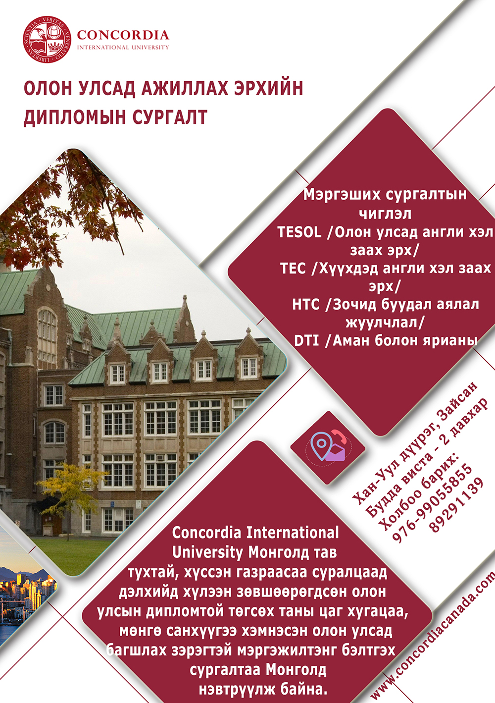 Суралцагсдад бизнесийн үгийн сан, нэр томьёо, албан бичиг, СҮ бичих, утсаар албан ажил явуулах, хэлэлцээр хийх арга техникийг эзэмшүүлэх нь бидний гол зорилго юм.