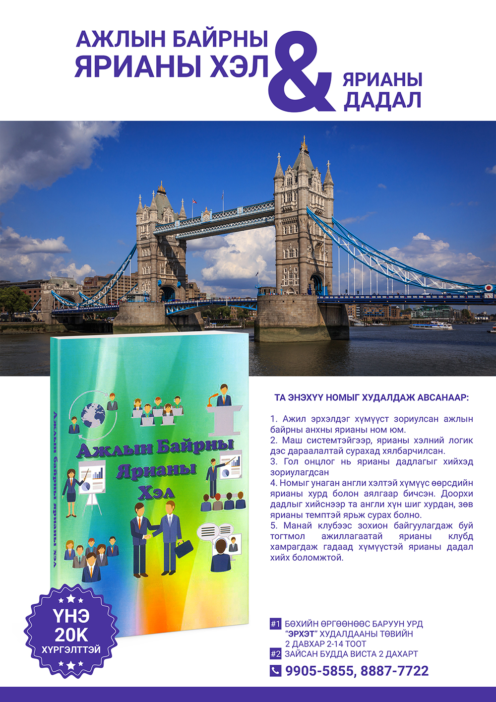 Англи хэлийг төгс эзэмшихэд чин эрмэлзлэл хамгийн чухал. Тиймээс “Ажлын байрны ярианы хэл” номыг бие даан суралцаж чадсан хүн бүхэнд Манай клуб үргэлж нээлттэй байх болно.