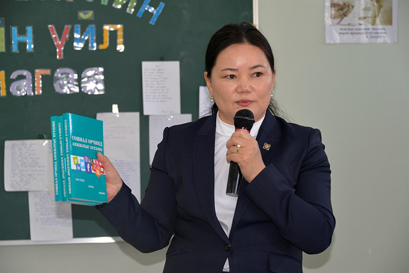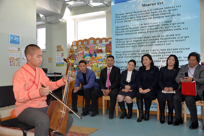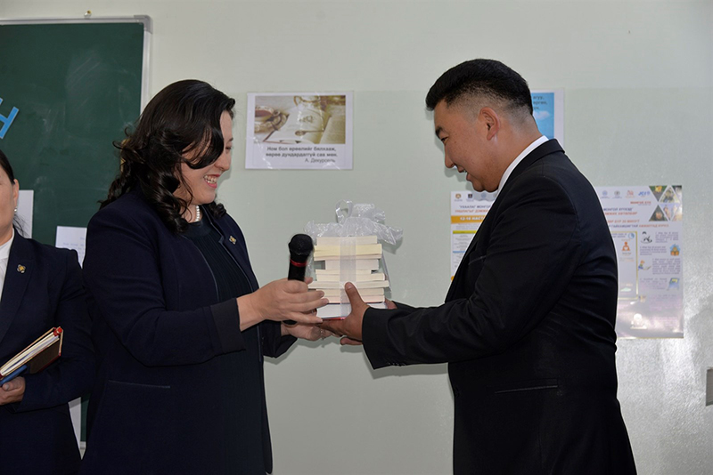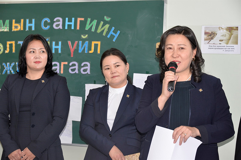 УИХ-ын гишүүн Г.Мөнхцэцэг, “УИХ-ын гишүүд дотроос тойргийнхоо сургуульд номын сан байгуулж, ирээдүйн эздийг номын нөхөр болгох үйлсийг эхлүүлсэн нь цөөхөн гэж бодож байна. Анги танхимыг зүгээр тохижуулаад орхилгүй, номын клуб байгуулж, идэвхжүүлэх ажлыг хүртэл хийж байгаад УИХ-ын гишүүн А.Ундраа болон сургуулийн хамт олон, хамтран ажиллаж байгаа бүх хүнд талархал илэрхийлье” гээд өөрийн уран бүтээлийн дээжээс бэлэг барив. Мөн тэрээр сурагчдад зориулан “Битгий урваарай” шүлгээ уншсан юм.