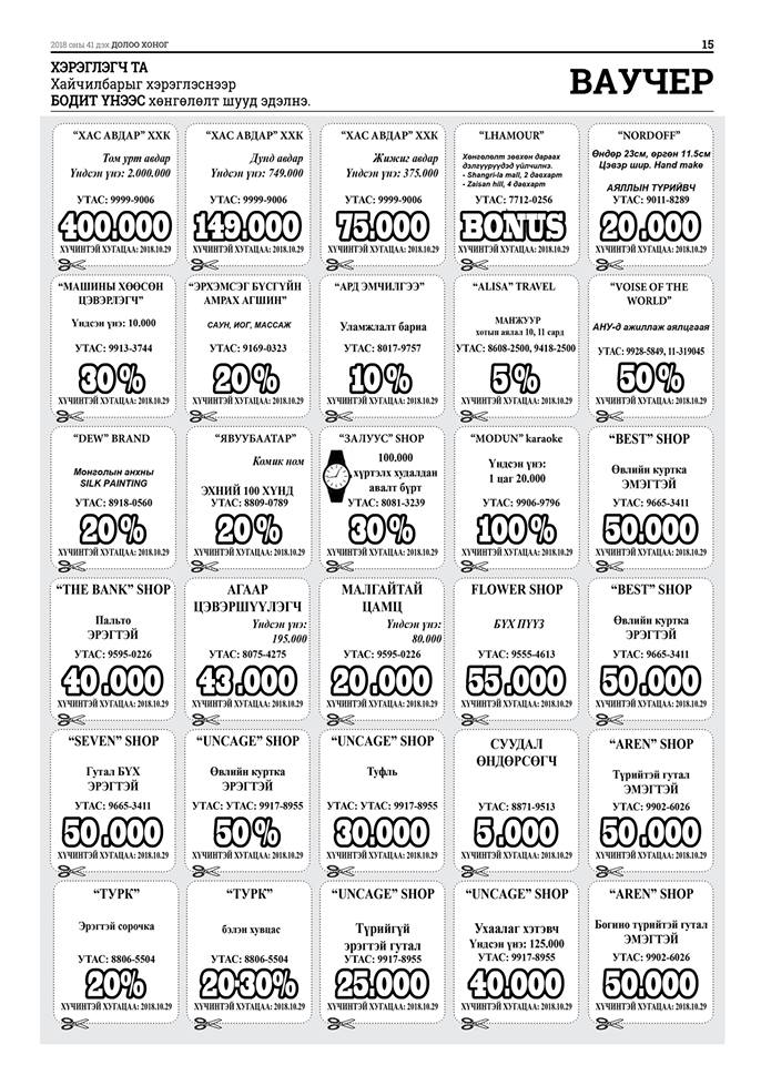 Сонины редакциас 5000 хүнд сониноо үнэгүй захиалах эрх бэлэглэхээр зарлаад байна. (Эхний 5000 хүнд) Сонины хайчилбарыг "Монгол шуудан" ХХК-д авч очин, захиалах боломжтойг сануулжээ. Энэ утгаараа нэг сонин 8000 төгрөгийг орлож байгаа юм. Түүнээс гадна бүтээгдэхүүн, үйлчилгээний 20.000-400.000 хүртэлх төгрөгийн ваучер, купонууд нийтлэгдэж, үл хөдлөх хөрөнгийн 5.000.000 хүртэлх төгрөгийн шууд хямдралууд ч багтжээ. Бас телевизийн мэдээтэй, комик, бүхий л салбарын тойм мэдээлэл, сонирхолтой ярилцлага, үйл явдлын тоймыг "Толь" сониноос тольдох боломжтой.