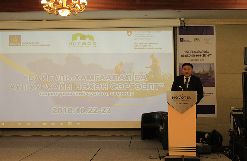 Семинарыг нээж хэлсэн үгэндээ БОАЖ-ын сайд Н.Цэрэнбат “БОАЖЯ-наас боловсруулсан Нөхөн сэргээлтийн хуулийн төсөлд уул уурхайн компаниудад хариуцлагын даатгалын тогтолцоог нэвтрүүлэх асуудлыг тусгасан. Ингэснээр компаниудыг давхар даатгалын компани хянах боломж бүрдэж, одоо үүсэж буй уул уурхайгаас үүдэлтэй асуудал үгүй болох нөхцөл бүрдэх юм. Мөн 2017-2018 онд Монгол Улсын хэмжээнд уул уурхайн улмаас эвдэрсэн газрын тооллогыг хийж, Ашигт малтмал ашиглалтын тусгай зөвшөөрөл эзэмшигчдийн байгаль орчныг хамгаалах үүргийн хэрэгжилтийн талаархи мэдээллийн санг бий болгох ажлыг зохион байгууллаа.