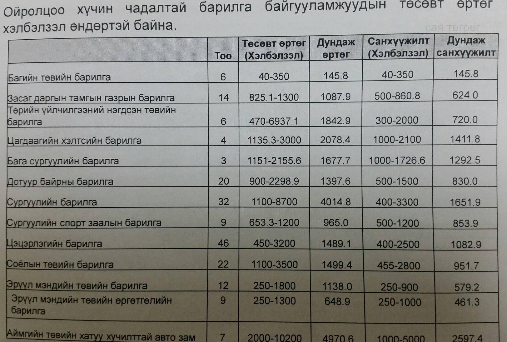 Ойролцоо хүчин чадалтай барилга, байгууламжуудын төсөвт өртөг харьцангуй зөрүүтэй байгаад шүүмжлэл дагадаг. Тэгвэл дараах хүснэгтээс мөнгөн дүнгийн зөрүүг харж болох юм.