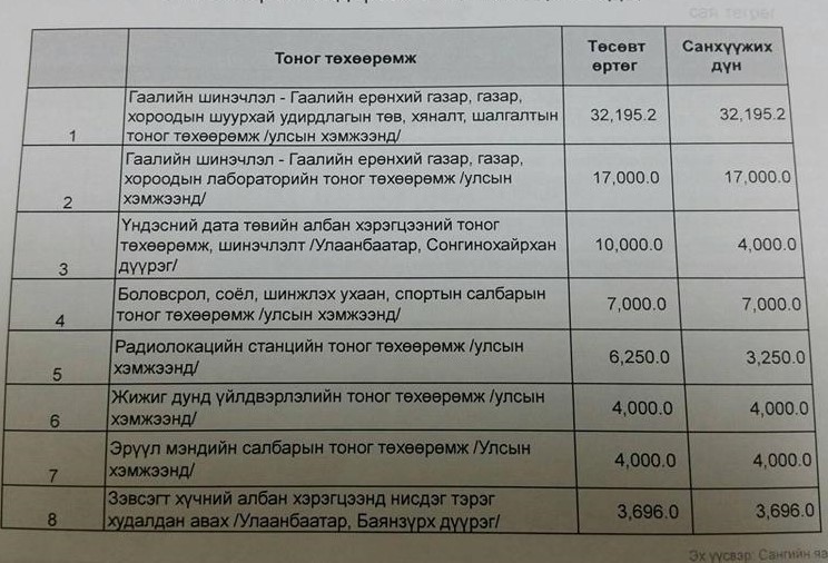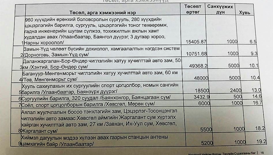 Тэгвэл шаардагдах төсөв нь өндөр ч 2019 онд санхүүжих дүн нь бага төслүүдийн мэдээлэл энд байна.