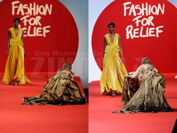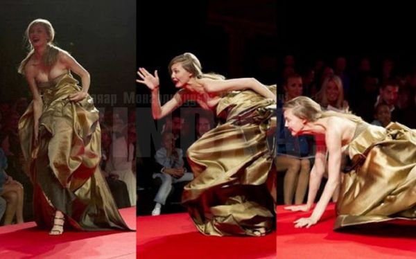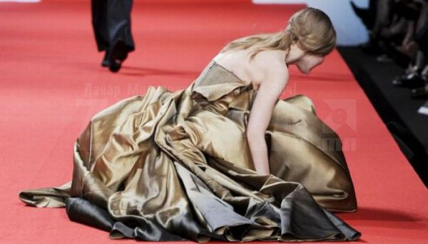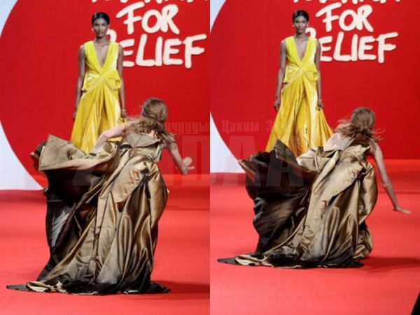 Загварын ертөнцөд тайзан дээр 3 удаа бүдэрсэн тохилдол гарч байгаагүй юм гэнэ. Анхных энэ болж байна