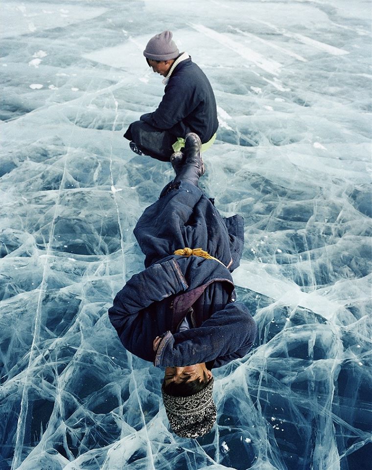 -“Мөсөн дээрх эрс”-ийг нэрлэнэ. Нуурын мөсөн хэвтэж байгаа залуусыг дээрээс нь авсан. Ихэнх зурагчдын авдаг өнцгөөс эрс өөрөөр авсан зураг. Зургийг нь дарчихъя гэхээр тэд ичиж, нэрэлхээд нэлээн юм болсон. Олон зураг авсны эцэст одоо та бүхний харж байгаа зураг гарсан юм.