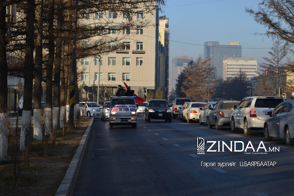 Төрийн ордонд АН “үргэлжлүүлэн ажил хаях”-аа мэдэгдэж, үүнтэй дөрөө харшуулан Төрийн ордныг тойрсон автомашинтай жагсаал өчигдөр эхлэв. Шаргал ордны гадна дотно өрнөж буй үйл явдлын хэлбэр дүрс нь өөр боловч агуулга, зорилго нь нэг гэж харж болохоор. Сөрөг хүчний гадна дотно өрнүүлж байгаа үйл явдлыг шатахуун импортлогчид сэм далдаас уухайлж, ард түмэн бодит байдалд эвлэрсэн ийм өдөр үргэлжилж байна.