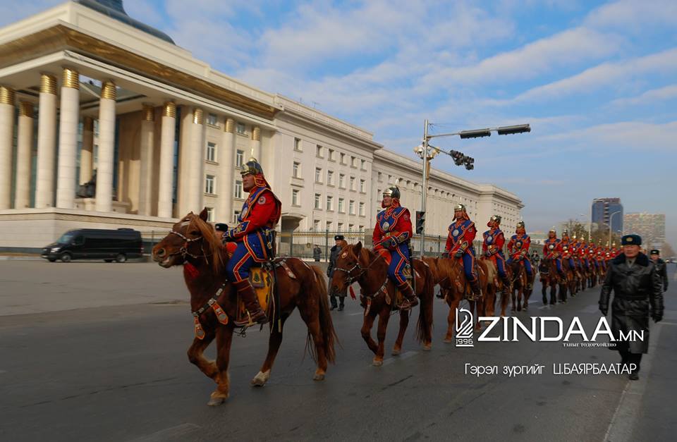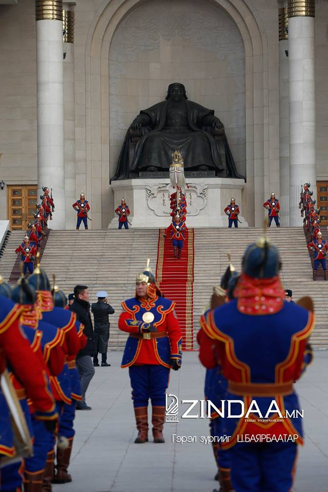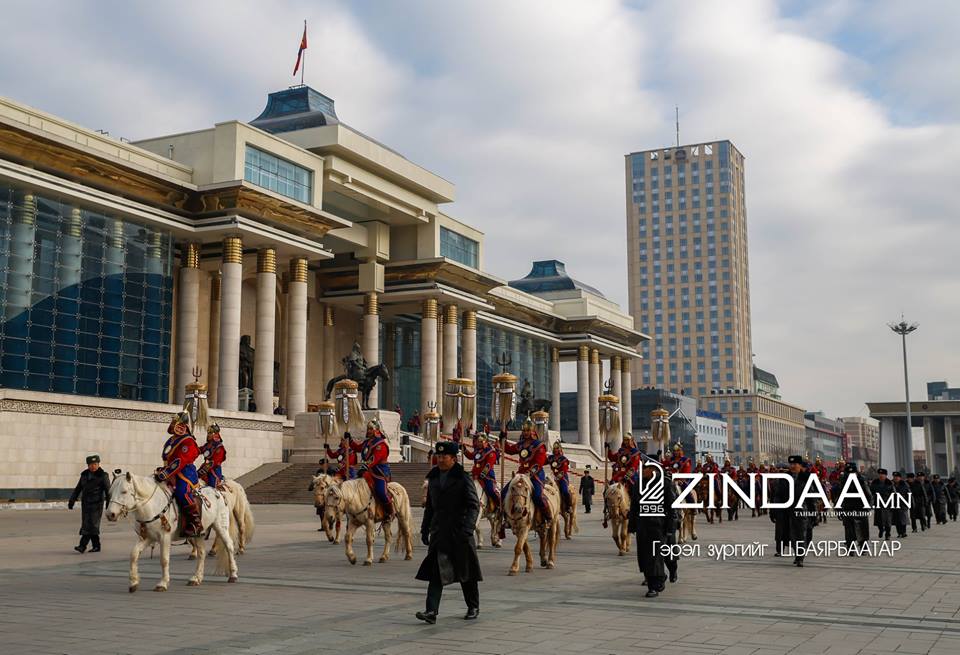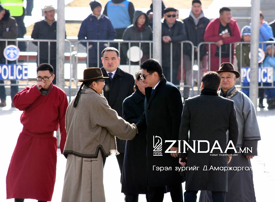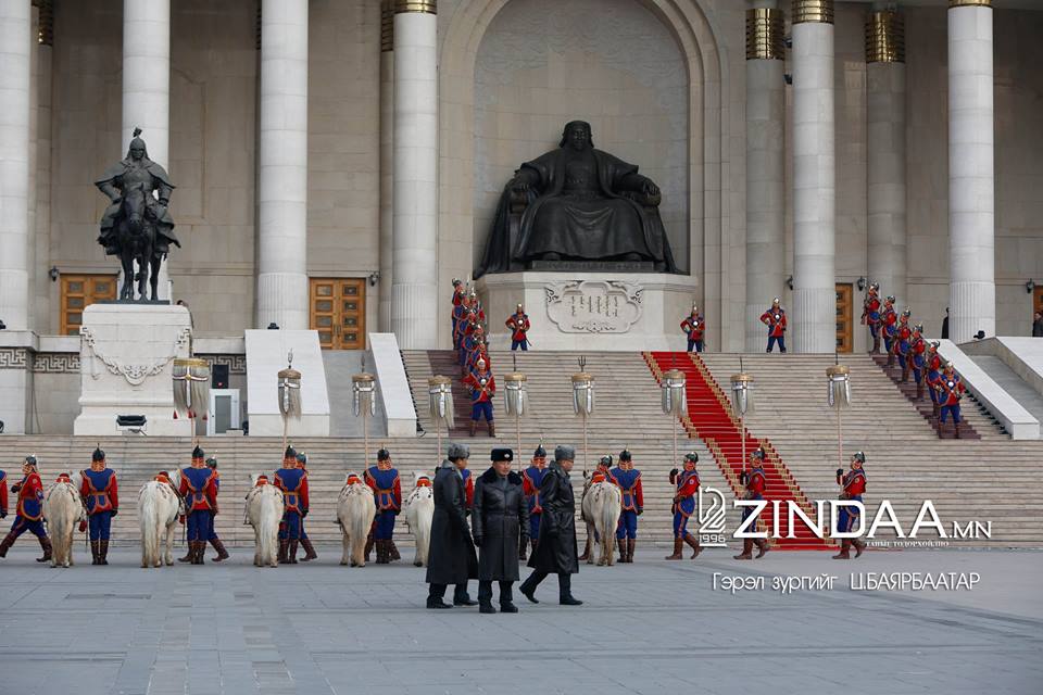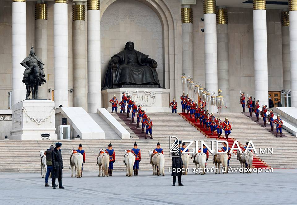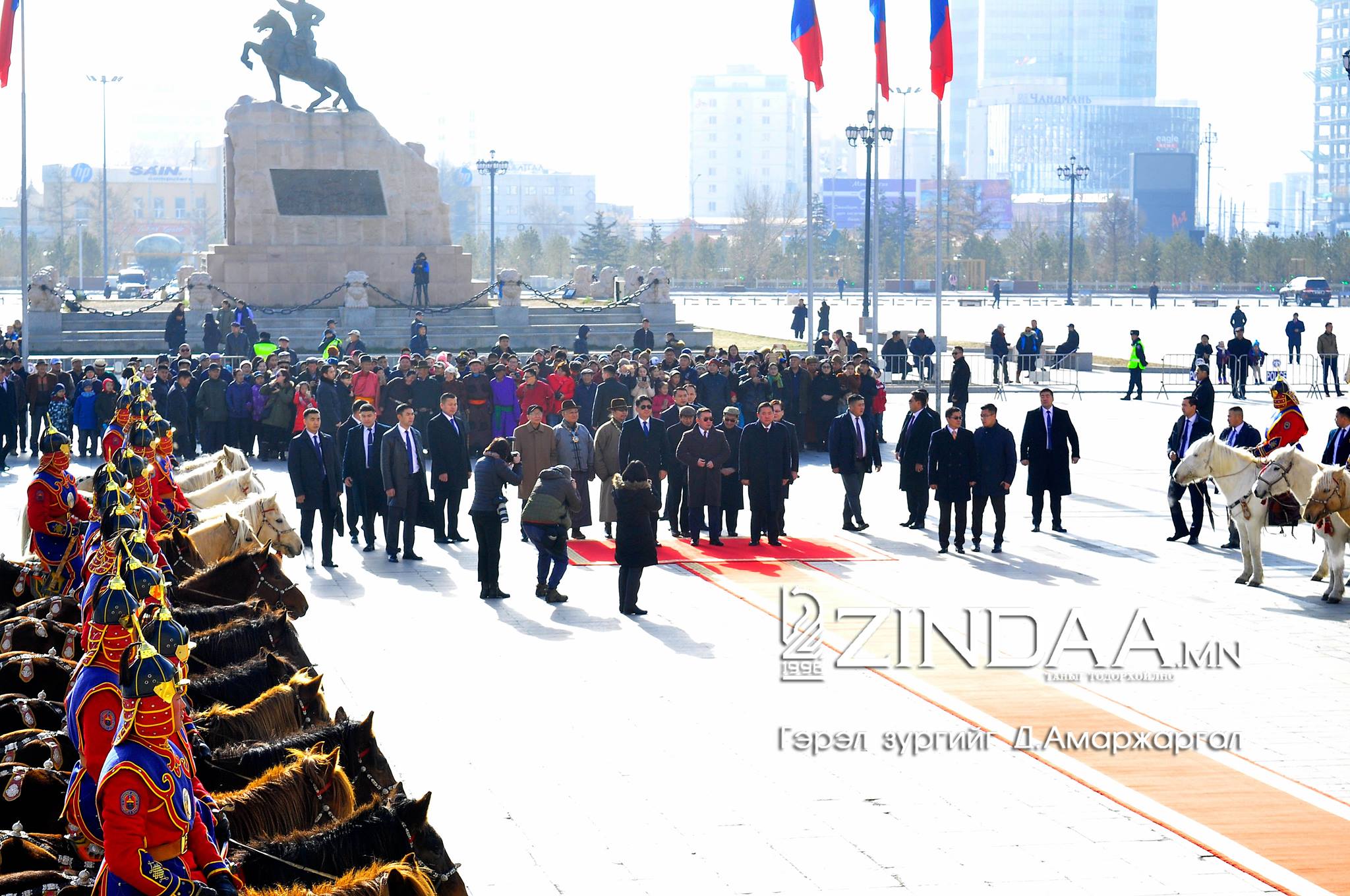 Их цагаан сүлдийг цэнгүүлэхэд хээр зүсмийн морьд хүлэглэсэн торгон цэрэг, төрийн тусгай хамгаалалтынхан дагалдаж, зэвсэгт хүчний үлээвэр найрал хөгжим хүндэтгэлийн ая эгшиглүүлэв.